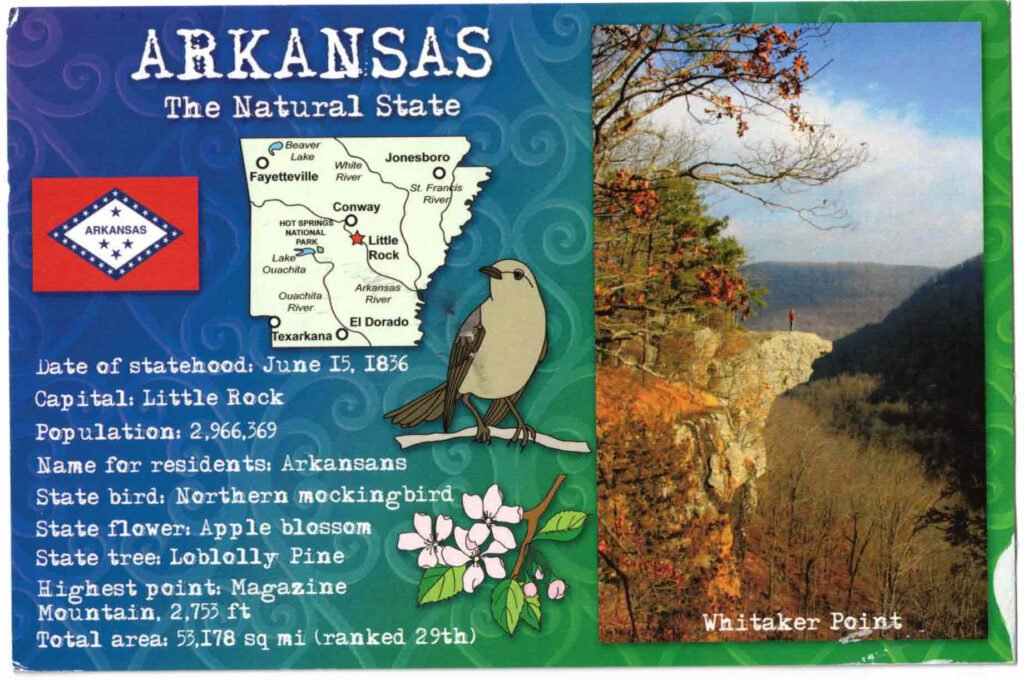 The purpose of this essay is to encourage you to use it. One of my good friends—and my editor—turned me into a fan. He’s an old-school guy: think spectacles, bow tie, and suspenders. That’s Bob. And Bob understands the power of the postcard. When he travels, he sends my wife and me postcards from his adventures—like this one from Arkansas: